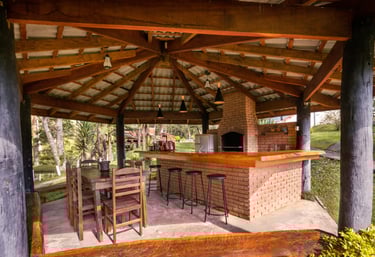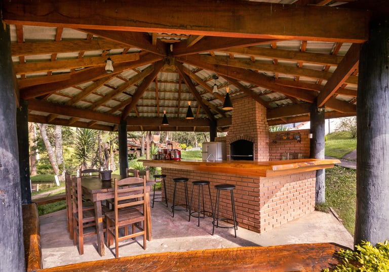 Quiosque gourmet com churrasqueira para encontros saborosos ao ar livre.