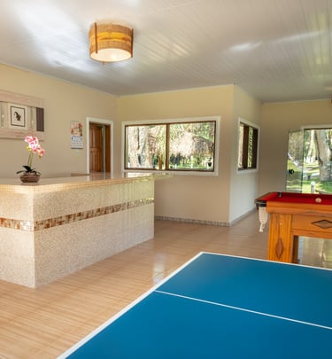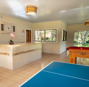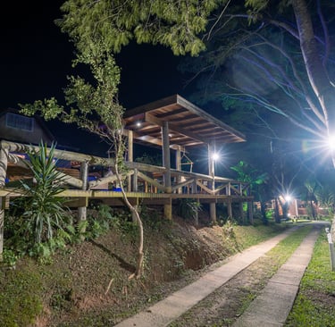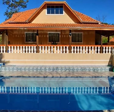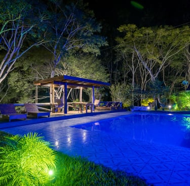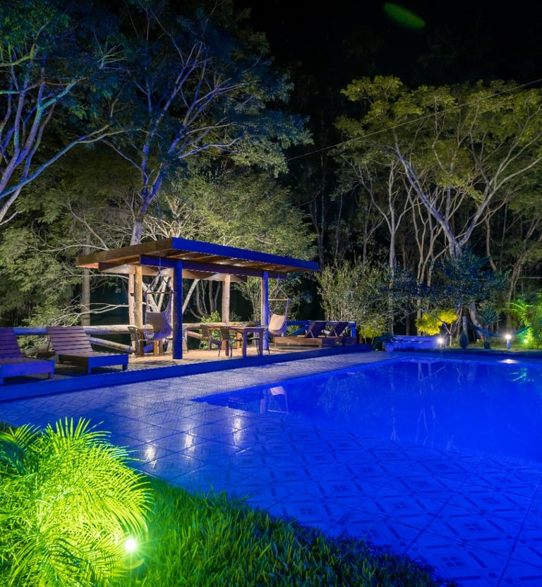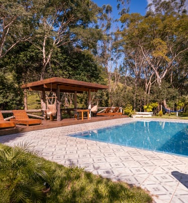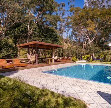 Deck com piscina para mergulhos refrescantes e momentos de descanso.
